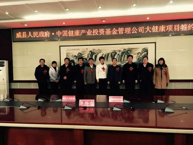 2016年1月22日,河北省威县人民政府与金年会官网-金年会(中国)一站式服务官网大健康项目签约仪式在河北省威县举行。威县人民政府县长商黎英、副县长孟祥义、副县长潘延彬,金年会官网-金年会(中国)一站式服务官网副总裁韩子宇、美好乡村农业科技发展有限公司总裁郭洪卫等出席签约仪式。 威县招商局局长刘汝恒主持仪式。韩子宇总裁首先对金年会官网-金年会(中国)一站式服务官网相关情况和前期准备工作做了详细介绍,商黎英县长对金年会官网-金年会(中国)一站式服务官网长期以来关注和支持威县发展表示感谢,并介绍了威县的经济环境、政策环境以及大健康事业发展情况。随后,双方就在威县人民政府关于推进健康服务事业发展的战略部署和总体规划下,分阶段开展大健康项目合作等问题进行了深入探讨并达成协议。双方同意,将发挥各自优势,共同推动医疗卫生、养老服务、健康管理、体育休闲、绿色农业、环保清洁等大健康领域的建设和合作,金年会官网-金年会(中国)一站式服务官网将发挥自身投融资平台优势,对威县健康产业分期投资总额将达到10亿元人民币。